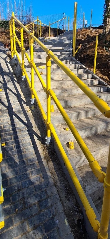 Furthermore, GRP has more flexibility than steel. Although this flex is recoverable, as proved with our load testing, it can cause public concern if the handrail starts to bend under the weight of a crowd.
